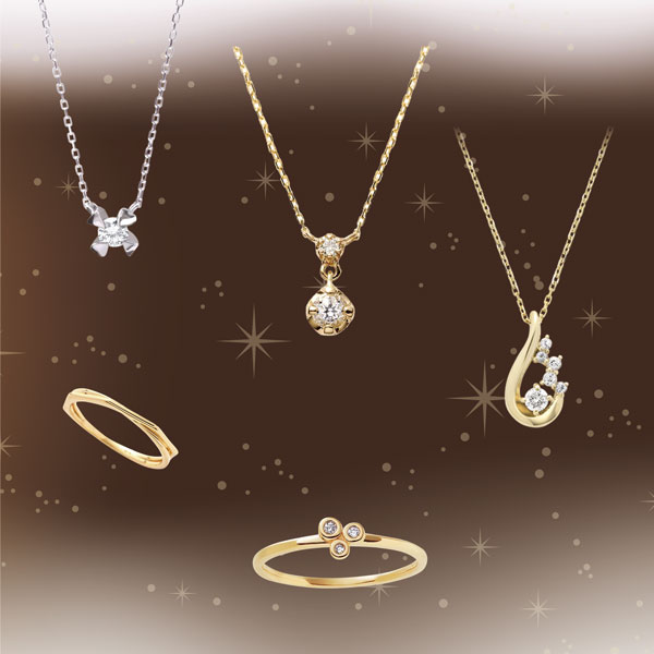 【左上】K10YG ダイヤモンドネックレス ¥26,400(税込)