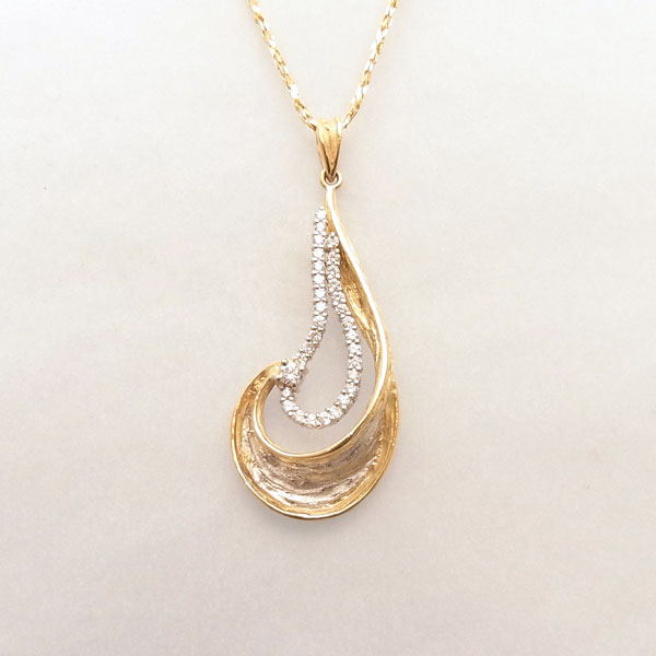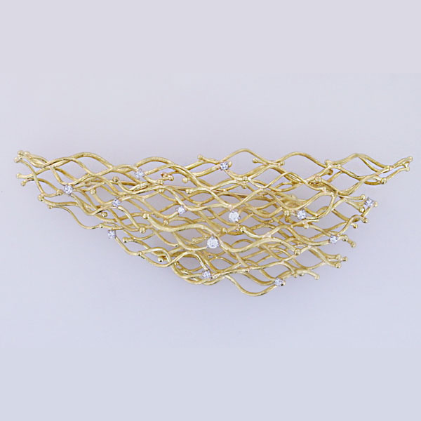 金の肌合いと触感が新鮮な18金製ダイヤモンドブローチ