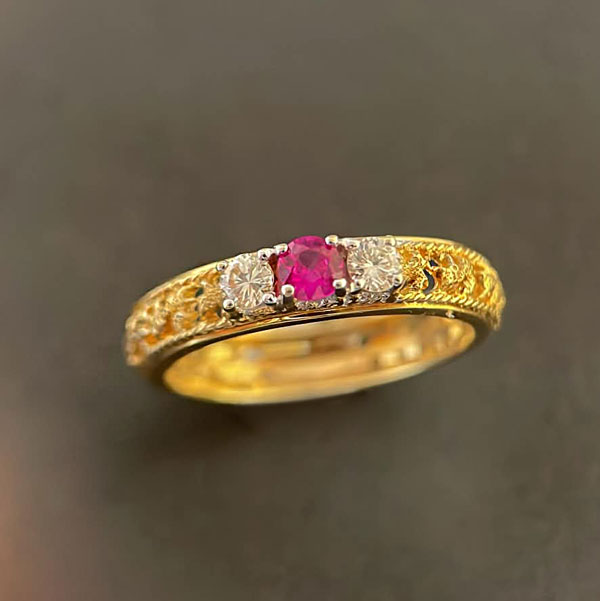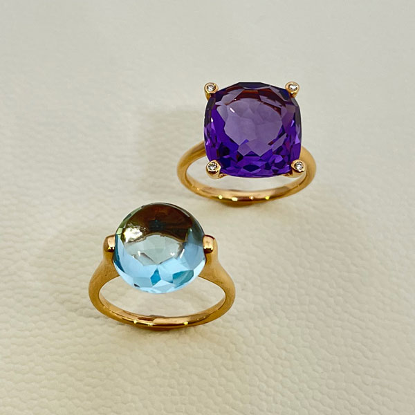 シンプルなデザインの18金製カラーストーンリング