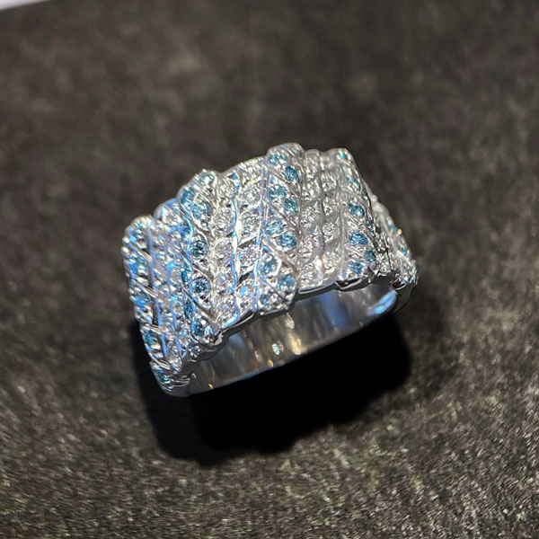 貴重なK18ホワイトゴールドの地金にビッシリと敷き詰めたダイヤモンド