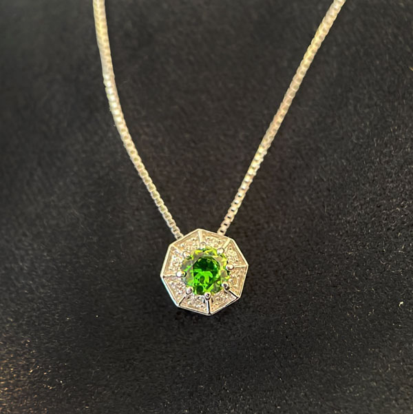 プラチナデマントイドガーネット/ダイヤモンドペンダントネックレス