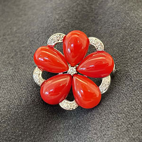 K18WG サンゴ/ダイヤモンドブローチ ¥360,000(税込)