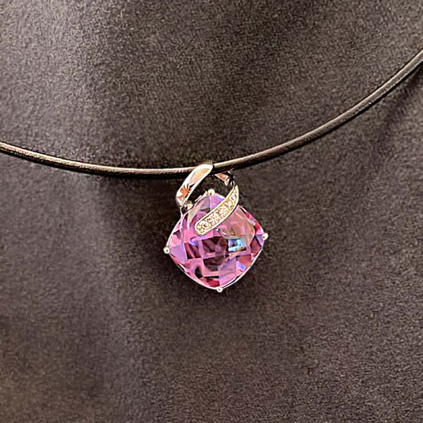K14WG アメシスト/ダイヤモンドペンダント(革ネックレス付き)