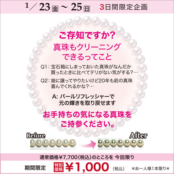期間中、特別価格でパールの輝きを取り戻せます。