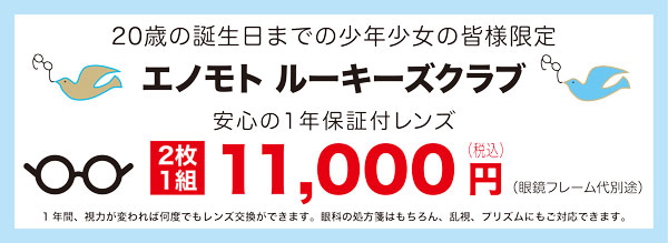 20歳の誕生日までの少年少女の皆様限定、安心で経済的な1年保証付レンズもございます。詳しくはこちらをご覧ください