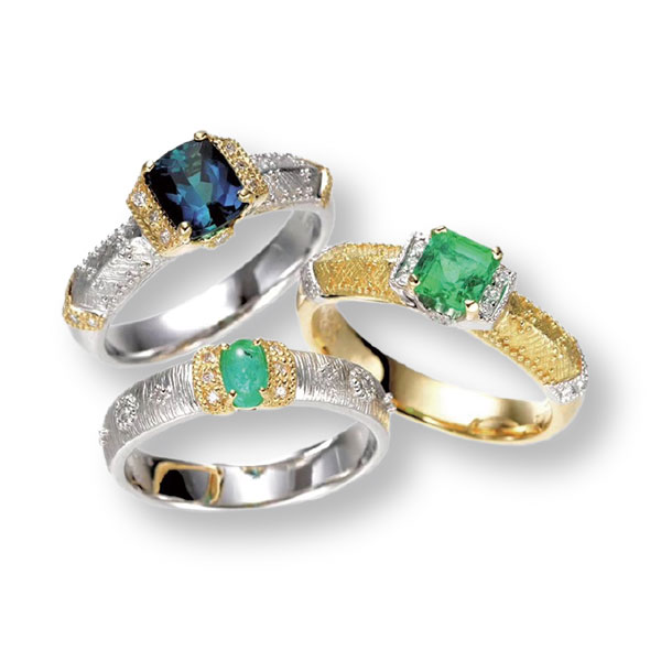 石の魅力をきれいに見せられる角度や向きを重視して作り上げるジュエリー
