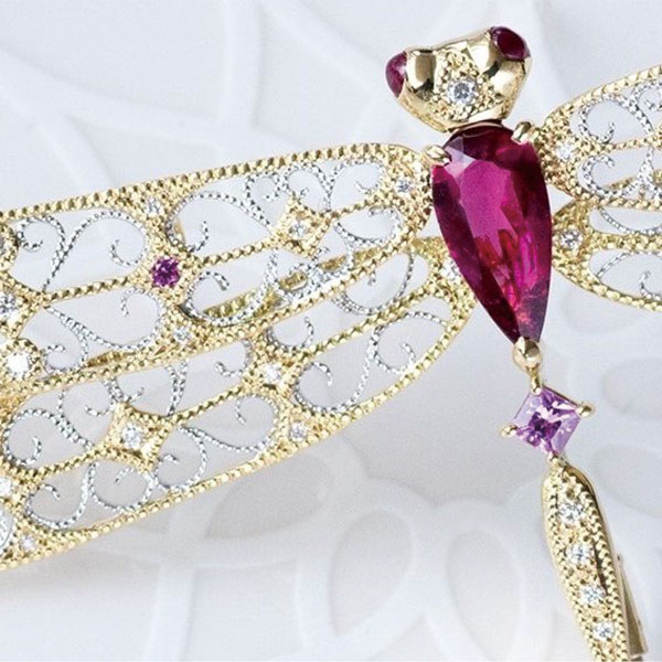独自技術がもたらす緻密な立体構造が特徴で、海外でも評判を呼んだ「トンボジュエリー」が有名。